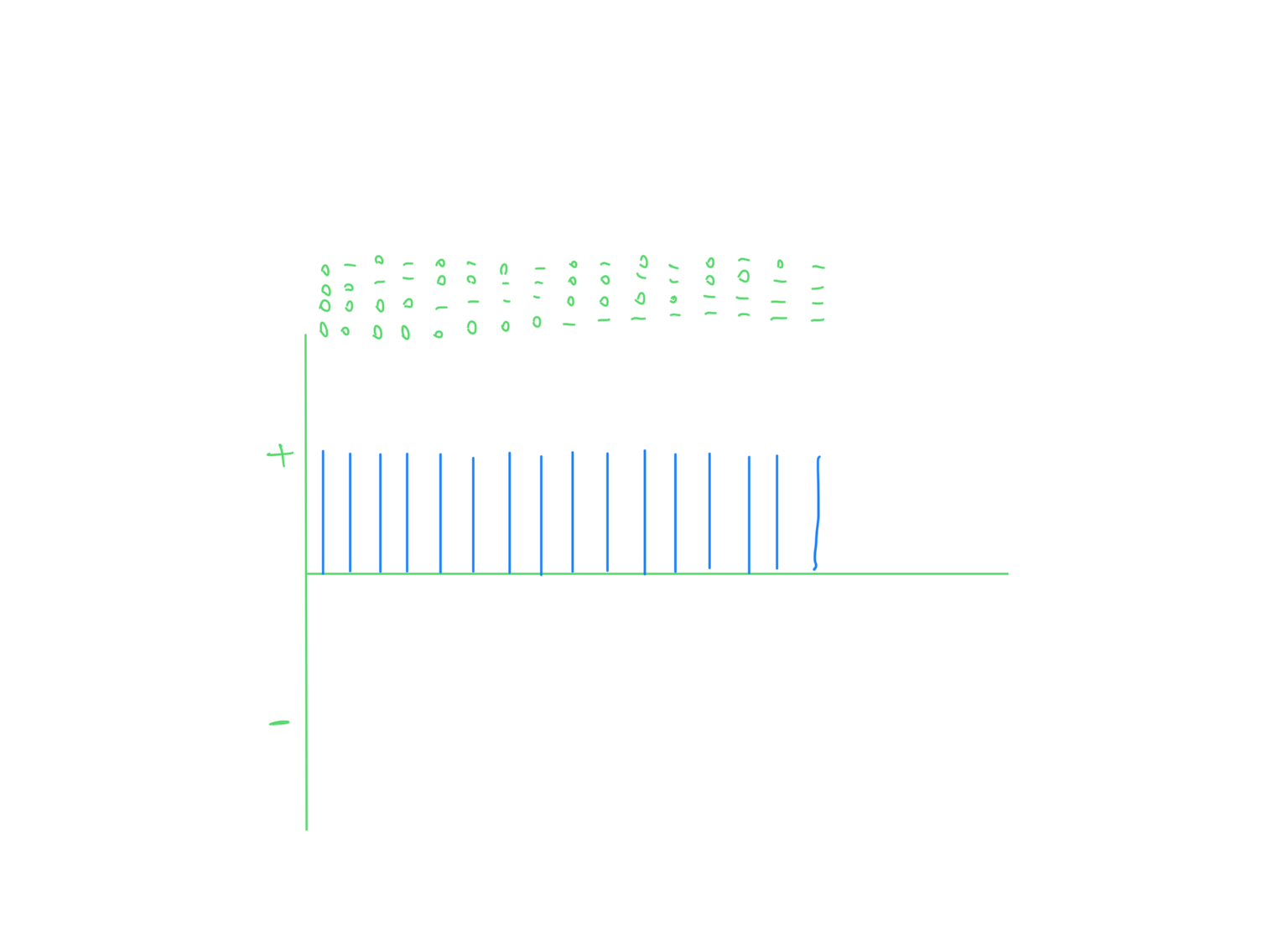 If we apply \(H^{\otimes 4}\) to \(\ket{0000}\), we can draw the amplitudes as the following, where + means the amplitude of the term is positive, and - means it is negative.