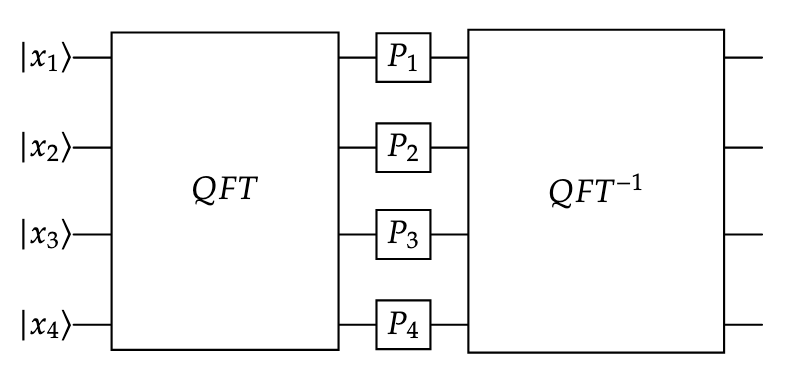 1. Finally, express the output of the following circuit. The inverse of the QFT maps from the Fourier amplitudes to the standard basis amplitudes.